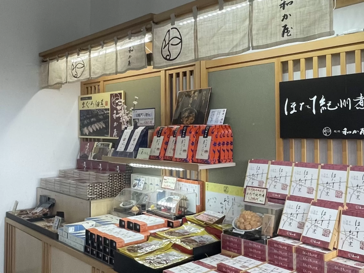 이 가게에서는 건어물과 기슈니(일본식 볶음밥) 같은 와카야마 전통 음식부터 풍미 가득한 향토 음식인 산마스시까지 다양한 지역 특산품을 판매합니다. 집에서도 구시모토 의 맛을 즐길 수 있어 기념품으로 인기가 매우 높습니다. 또한, 이 가게에서만 판매하는 킨콘 소프트 아이스크림은 관광객들에게 인기 만점이며, 꼭 한번 드셔보시기 바랍니다.